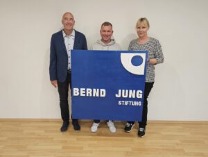 v.l.n.r. Michael Kaufel (Vorstand Bernd-Jung-Stiftung), Thorsten Schmitt und Petra Stölzle (Bernd-Jung-Stiftung)