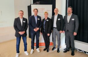 v.l.n.r.: Harald Stark (Geschäftsführer Bernd-Jung-Stiftung), Dr. Nicolas Meyer (Oberbürgermeister von Frankenthal und Kuratoriumsmitglied der Bernd-Jung-Stiftung), Petra Stölzle (PR Bernd-Jung-Stiftung), Bernd Leidig (Beigeordneter der Stadt Frankenthal) und Dr. Alexander Dejon (Schulleiter der IGS Robert Schuman)